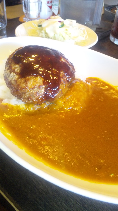 最後まで食べるには飽きるかもしれないシンプルなルーも、このソースのかかったハンバーグと一緒に食べると違う表情を見せる。