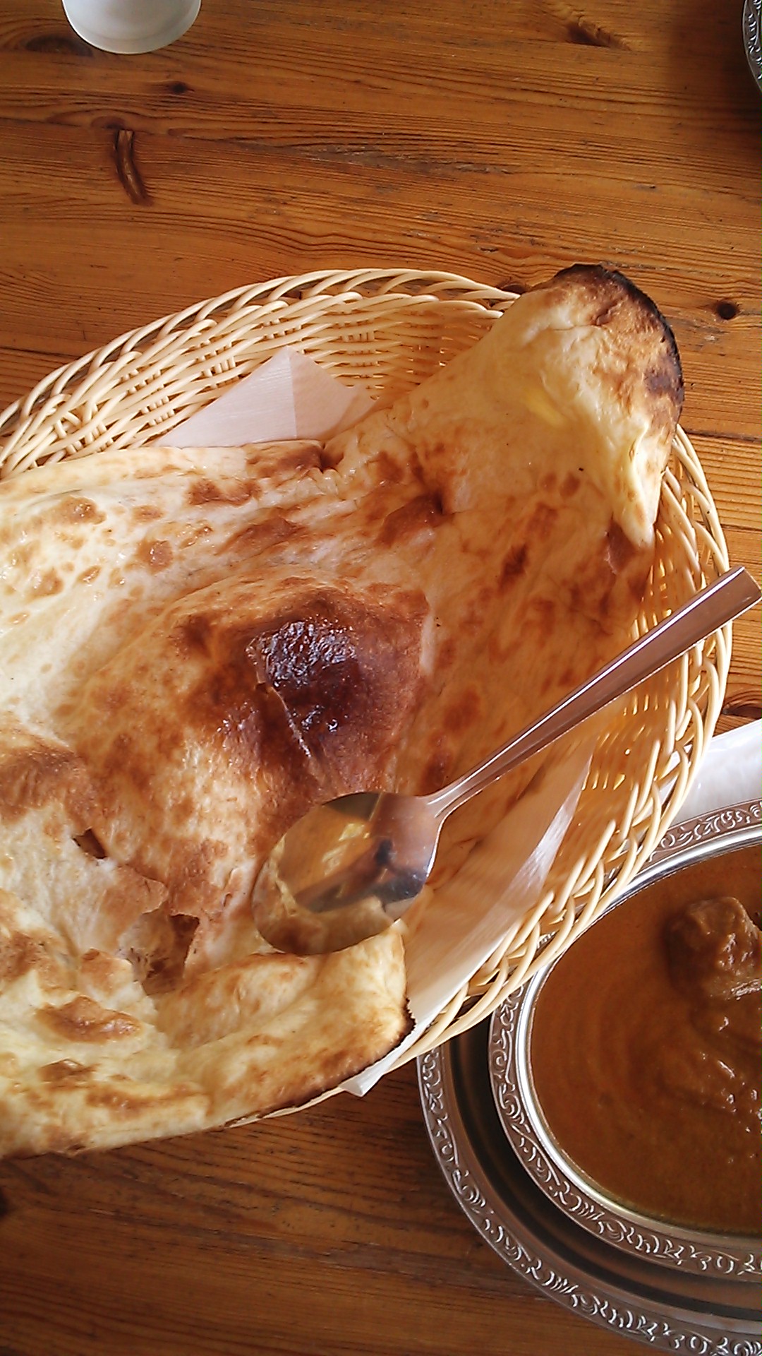 待って暫くすると、インドカレーを作るネパール人が「〇〇バンノカードノオキャクサマ」と片言アナウンスを。セルフなので取りに行く。